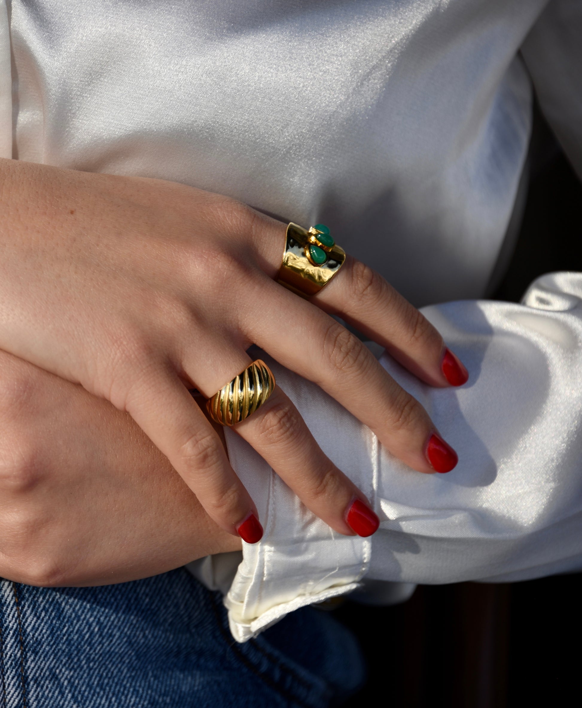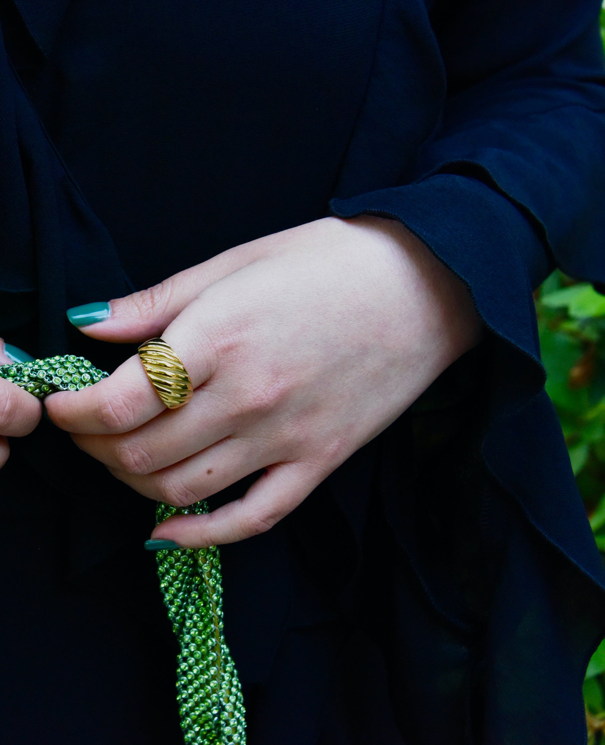 Avoid harsh chemicals: To prevent tarnishing and damage, avoid exposing gold-plated rings to harsh chemicals such as household cleaners, perfumes, lotions, and hairsprays. These substances can accelerate the fading or discoloration of the plating. Gold-plated rings should be stored in a cool, dry place, preferably in a jewelry box or our microfiber pouch. This helps minimize exposure to moisture, humidity, and air, which can contribute to tarnishing.